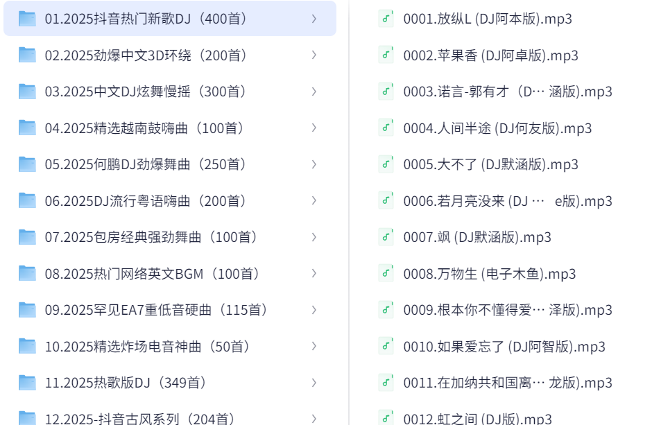 2025年超百万经典音乐歌曲抖音热门车载MV无损品质4K画质KTV 资源分享 栏目:音乐资源 作者:admin888 时间:2025-06-10 11:10:02 资源包含了各种类型的歌曲,抖音热歌,嗨曲,粤语,英语BGM,经典老歌等等20类。图片截图只包含了类目,歌曲可以打开之后详细查看。资源一共60多g,喜欢的可以保存备用。链接:https://pan.quark.cn/s/f2cb8de37ae4
